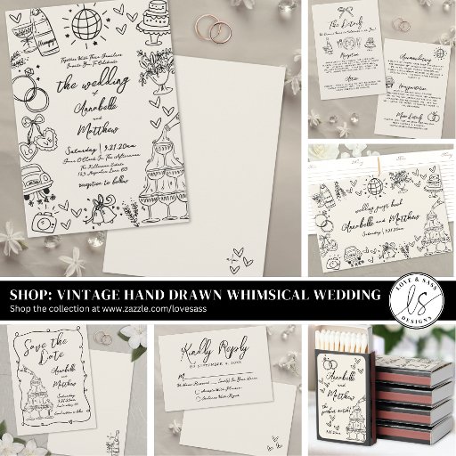 Hand Drawn Quirky Whimsical Vintage WeddingDesignt von Jo P.