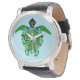 Handgezogenes Meer TURTLE - Wildtiere - Aqua - Armbanduhr