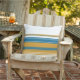Handtuch aus blau-gelben und weißen Streifen Kissen