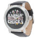 Hangin' mit meinen Chicks Ostern Bunny Groovy Retr Armbanduhr