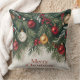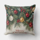 Decorate your home with the elegance of this "Merry Christmas" throw pillow. This unique design features a lush, hanging pine garland, adorned with traditional red, gold, and white ornaments and berries. The beautiful arrangement frames the text at the bottom, offering a fresh take on classic holiday imagery. Perfect for adding a touch of rustic sophistication and holiday spirit to any room. A festive statement piece for a cozy home.