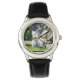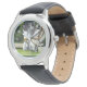 Uhr, Vintage Männeruhr mit schwarzem Lederarmband
