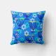 Dieses Kissen hat ein Hanukkah Design von Menorahs und Sternen auf einem blauen Hintergrund. Ideal für die Saison.