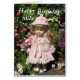 Glücklicher Geburtstagsmila-Text mit kleinen Puppen und Blume