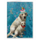 Diese bezaubernde Labradors Geburtstagskarte wird jeden zum Lächeln bringen. Doppeltes Problem, große Labrador trägt einen Geburtstagskuchen mit Kerzen und der Welpe trägt einen roten Bogen. Design von Inge Lewis. Weitere passende Produkte finden Sie im ingeinc.com-Shop | Boutique.