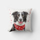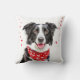 Happy Border Collie mit Red Heart Bandana Throw Kissen. Niedliche und fröhliche schwarz-weiße Border-Collie mit einer roten Bandana um den Hals mit Herzen.