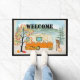 Happy Camper Herbst Türmatte mit See, Hirsche und Ahornbäumen.