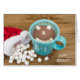 Heiße Kakaogetränke mit Marshmallow-Happy-Gesicht in türkisfarbener Tasse und Weihnachten Weihnachtsfeier auf rustikalem Holz