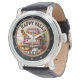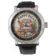 Uhr, Vintage Männeruhr mit schwarzem Lederarmband