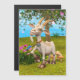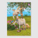 3D-Darstellung einer glücklichen Cartoon Ziege auf einem Fantasiegartenhintergrund