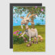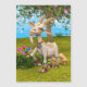 3D digitale Darstellung einer glücklichen Cartoon Ziege auf einem Fantasiegartenhintergrund