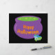 Diese niedliche Cauldron-Illustration zeigt einen lila Cartoon-Kessel, der bis zum Rand gefüllt ist und mit einer blubbernden grünen Hexenbraue gefüllt ist! Der Pot sagt "Happy Halloween" in goulischen, gruseligen orangefarbenen Buchstaben und hat eine blaue und grüne Kröte daneben. Diese lustige und originelle Halloween-Kunst ist das perfekte Geschenk für jeden, der Lieben spukhafte Dinge, Hexen, Frösche und Toad und Halloween! Trick oder geil!