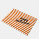 Dress up your Zuhause oder front door mit diesem schicken orange-weiße Streifen Happy Halloween matte. Eine großartige, stilvolle Halloween-Dekoration.