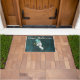 Diese Outdoor-Begrüßungstürmatte hat einen weißen angekleideten Geist, der in einem Sternenhimmel schwebt und einen extravaganten blauen Hut trägt und einen schwarz-goldenen Stock mit einem goldenen Schädel trägt. Passen Sie den glücklichen Halloween-Text mit der Vorlage an.