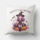Happy Halloween Lila Hexenkürbis & Fledermäuse Kissen