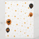 Fröhliche Halloween-Illustration mit schwarz-orangefarbenen Party-Ballons mit Geist, Hexe, Spinne und Spinnennetz und Jack-o-Laterne auf weißem Hintergrund.