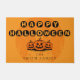 Dieses glückliche Halloween Kürbisfamiliendesign mit lächelnden Jack-o’-Laternen, einer Spuk Kulisse und einem eigenen Familiennamen. Perfekte personalisierte Halloween-Dekoration, um die Gäste willkommen zu heißen, Ihrem Zuhause einen festlichen Charme zu verleihen und Halloween zum Leben zu erwecken.