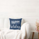 Happy Holidays werfen Kissen. Schwarz-dunkelgraue heilige Blätter auf dunkelblauem Hintergrund auf karierten Stil. Happy Holidays ist in zwei Schriftart in Weiß. Für ein rustikales und dennoch klassisches Weihnachten.