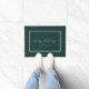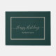Eleganter Happy Holidays Doormat mit einem weißlichen Skript auf dunkelgrünem Hintergrund. Personalisieren Sie Ihre Daten mit Ihrem Familiennamen oder Text.