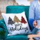 Dieses Urlaubsdesign enthält den Text "Happy Holidays" in der modernen Typografie mit Weihnachtsbäumen. #christas #holidays #Liebe #saisononal #festive #kariert #winter #chic #stylish #modern #typography #style #fashion #modische #modische #leopardprint #wear #wear #cushions #throwpillows #pillows #christmasdecor #gifts #Zuhause #homedecor