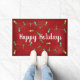 Eine farbenfrohe Weihnachtslichtsreihe in rot mit Happy Holidays Text.