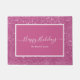 Eleganter Happy Holidays Doormat mit einem weißen Skript auf einem rosa Hintergrund, das durch einen rosa Glitzer-Hintergrund geschmückt ist. Personalisieren Sie Ihre Daten mit Ihrem Familiennamen oder Text.