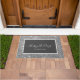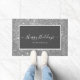 Happy Holidays Doormat mit einem weißen Skript auf einem grauen Hintergrund, die durch einen silbernen Glitzer-Hintergrund verziert. Personalisieren Sie Ihre Daten mit Ihrem Familiennamen oder Text.
