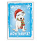 Senden Sie Weihnachten Grüße mit dieser Karte eines niedlichen Dogo Argentino Welpen mit einer Weihnachtsmannmütze und gestreiftem Schal inmitten von Schneeflocken und den Worten, Happy Howlidays! Ideal für Dogo liebende Familien und Freunde. Ich wünsche Ihnen einen schönen Urlaub!