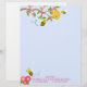 Dieser bezaubernde Buchstaben hat einen Zweig von schönen rosa Blume oben und eine kleine Gruppe unten. Am Ast hängt ein Bienenstock, und zwei Bienen schweben. Eine andere Biene ist dabei, auf den Blume unten zu landen. Hintergrund ist ein hübscher Himmelblau. Ideal für Damen oder kleine Mädchen, die Briefe schreiben lernen.