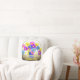 Kopfkissen mit originellem Design aus einem hübschen Korb von Blume und einem kleinen blauen Vogel zum Muttertag. Der Text, der individuell angepasst werden kann, sagt "Glücklicher Muttertag".