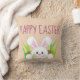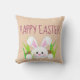 Dieses flauschig weiße Kaninchen guckt aus seinem Kaninchenloch, um dir ein glückliches Ostern zu wünschen. Auf der Rückseite des Kissens befindet sich eine vollständige Ansicht, die das Kaninchenmuster wiederholt. Die Hintergrundfarbe, ein weiches Beige, kann individuell angepasst werden.