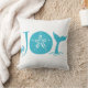 Das Weihnachtskissen zum Thema "Joy" am Strand ist mit tropisch türkisfarbener Typografie mit Sand-Dollar-Muschel und Wal-Schwanz ausgestattet. Ideal für Strand- und Meeresliebhaber und Wassersportler, Küsten- und Ozeanfans. Original-Kunstwerk KL Stock.