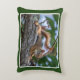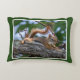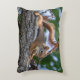 Ein süßes Bild eines lächelnden roten Eichhörnchens, das sich entlang einer Baumgrenze erstreckt.
