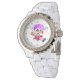Eine wunderbare Damenuhr mit weißem Armband und grün-weiß-kariertem Ziffernblatt. Trägt sich ganz fabelhaft. Exzellenter Druck, sehr klare Farben. Schönes Design.
