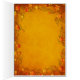 Schöne Herbstfarben in Rot, Orange, Gelb und Braun mit Kürbissen auf einem goldgelben Imitat. Grußkarte für eine herzliche Erntedank-Nachricht.