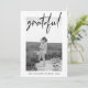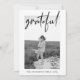 Feiern Sie die Jahreszeit der Dankbarkeit mit dieser eleganten "Grateful" Skript Urlaubsfotokarte. Diese Vorlage ist mit modernen handgeschriebenen Schriften in Schwarz und Platz für Ihr Lieblings-Foto gestaltet und bietet eine raffinierte Art, Dankbarkeit auszudrücken. Ideal für Erntedank, Ansammlungen fallen oder einfach Liebe und Wertschätzung mit Familie und Freunden teilen. Vollständig anpassbar mit Ihrem Familiennamen und Jahr für einen zeitlosen Sake.