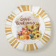 Das perfekte runde Kissen für den Erntedank-Urlaub, um ein und alle zu grüßen - dieses Kissen mit feinem Schriftart, der jedem ein "fröhliches Dankeschön" wünscht, gepaart mit einem Cornucopia voller bunter Kürbis und Sonnenblumen. Wählen Sie Ihr gewünschtes Gewebe vor dem Checkout aus.