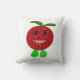 Dieses phantastische Kissen bietet einen niedlichen Cartoon einer lächelnden Tomate mit schwarzen Augen, rosa Mund und niedlichen kleinen grünen Füßen.