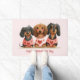 Niedliche Abbildung von Dackel-Hunden in Rot und Rosa für Valentinstag gekleidet. Ideal für Liebhaber von Haustieren während der Valentinstag-Saison.