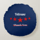 Rund Kissen, enthält Wörter über Veteranen," Veteranen danken Ihnen" mit blauem Hintergrund und roten Sternen zwischen den Worten, Geeignet zum Feiern von Veteranen Tag.