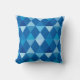 Modernes Harlequin-Muster aus gestapelten Dreiecken, die Diamantformen formen - Schattierungen von blasser bis heller Denim-Blau auf einem mittelblauen Kissenboden