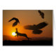Harris-Falken. Harris feilbieten ist der einzige Raubvogel, das in den Familiengruppen wie Wölfen jagt. Drei Harris-Falken jagen unten einen Hasen. Das Feuer der untergehenden Sonne hinter ihnen. Computerkunst durch Kathie Miller.