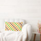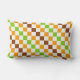 A vibrant checkered pattern of alternating green, orange, and brown squares on a white background. The design creates a lively, geometric feel.