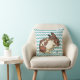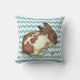 Häschen, das sein Gesicht mit blauem Zickzack Kissen