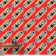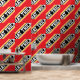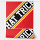 Dieses sportlich geflieste Hockey-Design bietet athletischen HAT TRICK Text in hervorgehobenen breiten diagonalen schwarzen, weißen und goldgelben Rennstreifen vor leuchtend rotem Hintergrund. Die ersten und letzten Buchstaben des Textes laufen von den Designkanten mit einem dynamischen Bannereffekt ab. Das Design ist wiederholt gefliest. Die Farben und Texte in diesem Design können personalisiert sein.