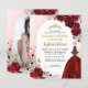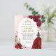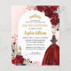 Floral Burgund Maroon Rote Gold Prinzessin Gown Dress Glitzer Sparkle Tiara Crown Butterfly 15. Geburtstag Quinceanera Einladung