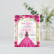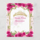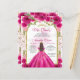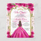 Eleganter goldener Bogen mit blumengeschmücktem Prinzessenkleid für die 15. Geburtstags-Quinceanera-Einladung.