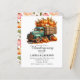 Eine Niedliche Erntedank Illustration mit einem LKW voller Kürbis, Mais und Weizen auf der Vorderseite und farbenfrohen rosa Orangenkürbis auf der Rückseite. Sie können diese Einladung mit Ihren Dinner-Details personalisieren.