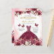 Feiern Sie Ihren besonderen Tag mit der Einladung der Prinzessin Quinceañera aus Burgundy Butterfly. Dieses elegante Design besticht durch seine bordeauxfarbenen Farbtöne mit zarten Blumen- und Schmetterlingsakzenten, die Schönheit und Transformation symbolisieren. Die Einladung ist perfekt für eine Quinceañera zum Thema Prinzessin geeignet und vermittelt das Wesen der Gnade und der Eleganz. Die faszinierenden Details und die lebhaften Farben Set für ein unvergessliches Fest und laden Ihre Gäste ein, an diesem einmaligen Event teilzunehmen. Lassen Sie sich verzaubern von dieser atemberaubenden, zeitlosen Einladung, die Ihren Stil und Ihren Charme widerspiegelt.