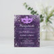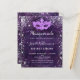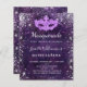 Für eine elegante Masquerade, Quinceañera, 15. Geburtstag. Ein tiefes lila Blumenmuster als Hintergrund. Dekoriert mit Imitaten silbernen Glitzer Staub und eine Maskerade Maske. Personalisieren und fügen Sie Namen, Alter und Party Details hinzu. Der Name wird mit einem handgeschriebenen Stilskript geschrieben